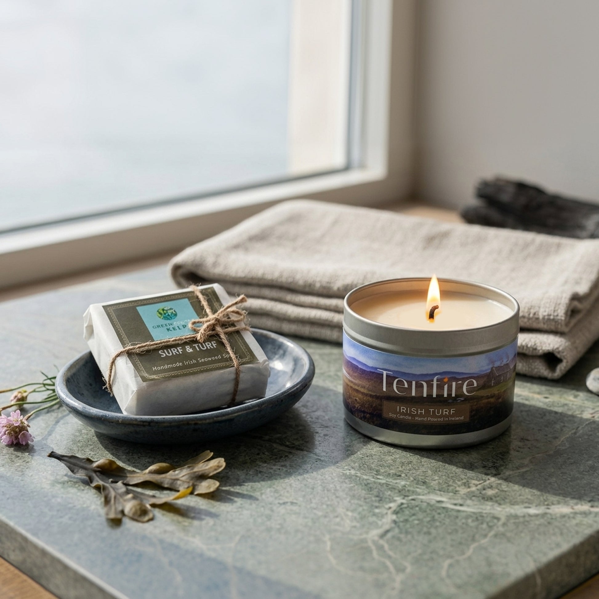 This special bundle unites two handcrafted treasures. Our bestselling Irish Turf Candle and a nourishing peat and seaweed soap, created in collaboration with a fellow artisan on Ireland’s Wild Atlantic Coast. Together, they capture the spirit of Ireland in scent and touch.