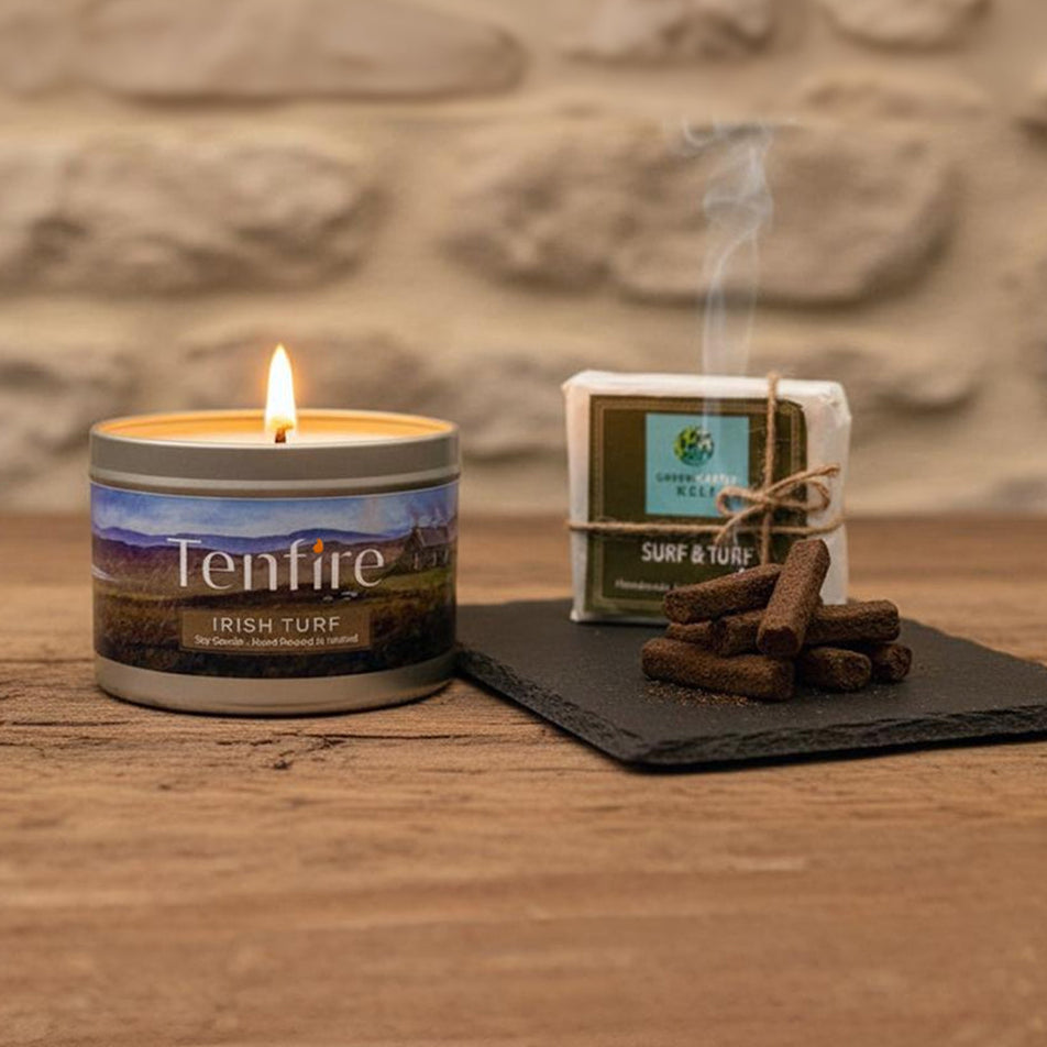 Our Irish Turf Gift Set Bundle captures the heart of Ireland’s heritage through three handcrafted treasures: a soy wax candle, authentic Irish turf peat incense and a nourishing soap infused with Irish seaweed and peat moss.